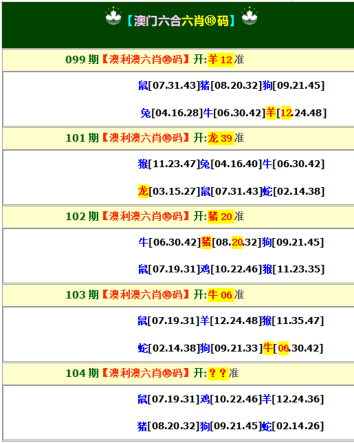 | 绿肖:羊、龙、牛、狗 |